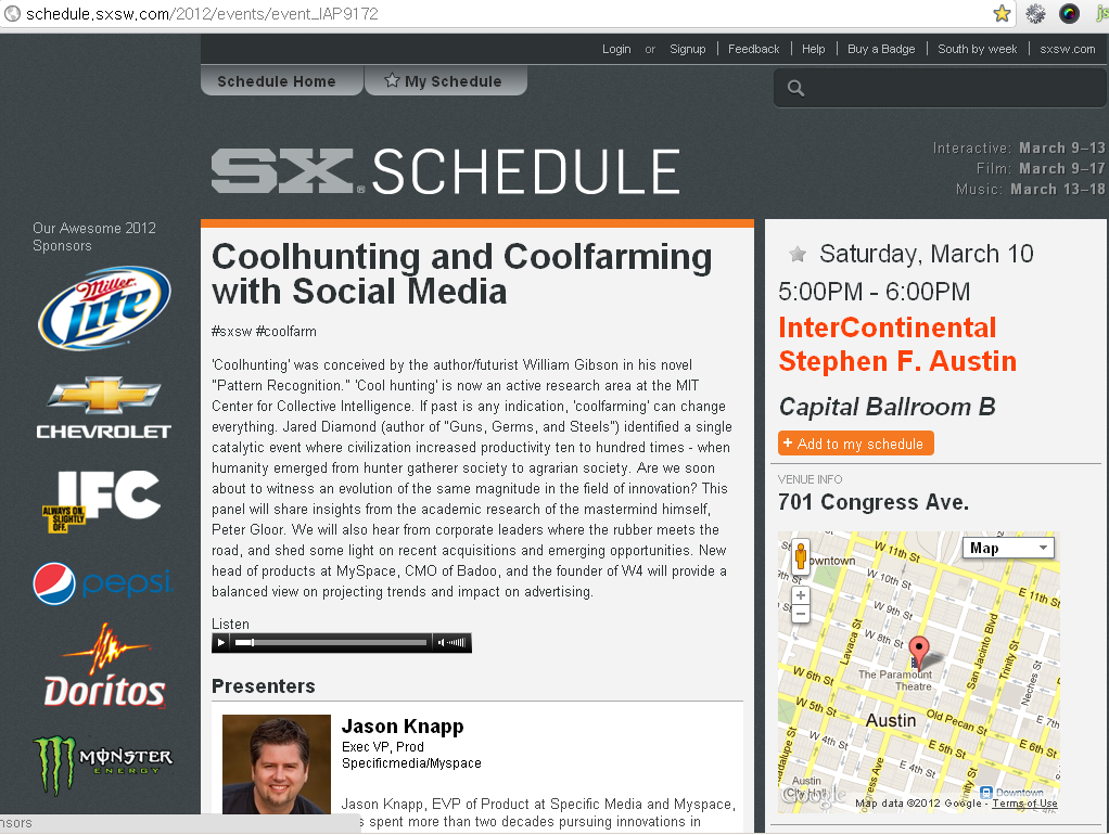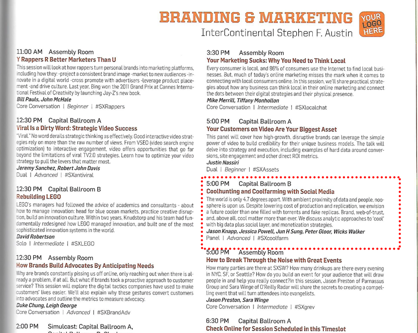 2012년도 미국에서 가장 큰 컨퍼런스 중 하나인 SXSW 에서 MIT의 Peter Gloor 교수님과 업계 임원들을 직접 초청해서 패널을 기획하고 주최했었습니다. 그리고 인터 넷 투표결과 top trending list에도 올랐습니다. 저같이 아무것도 없는 다윗이 골리앗같은 업계 거물들을 설득해서 패널을 기획하고 같은자리에서 발표를 한 비결은 "미국을 바라보고 쫓아만 갈것이 아니라, 미국이 바라볼 곳을 제시" 한 결과라고 봅니다.